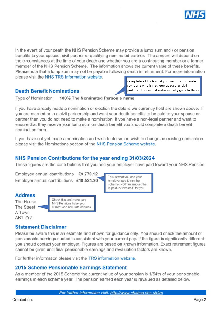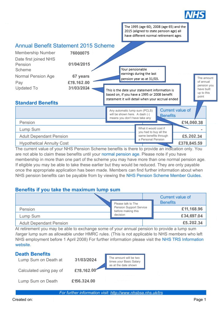 Within the TRS you will find your Annual Benefit Statement (ABS) Which shows your pension information. This will be broken down to the various parts of the NHS Pension Schemes you have accrued membership in.